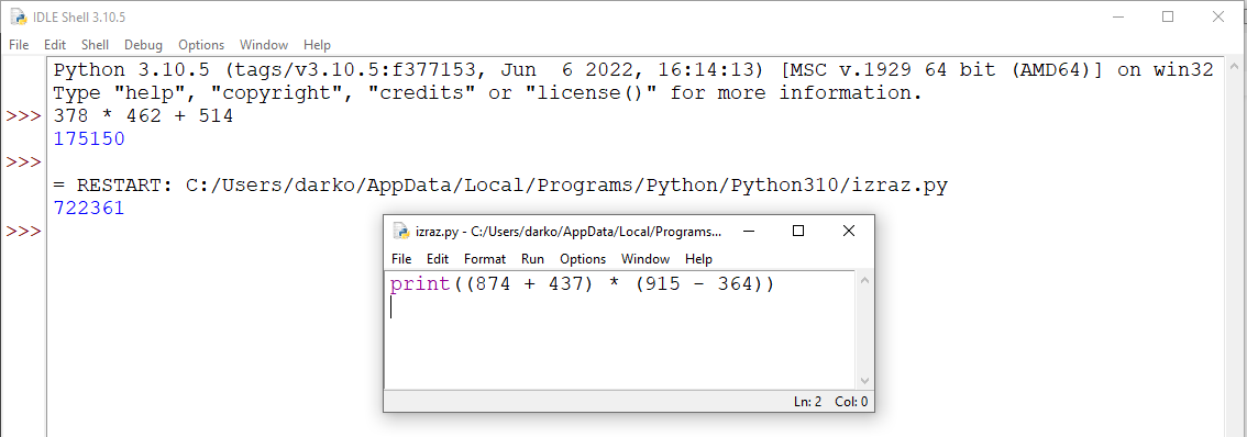 Покушај да претходни задатак урадиш и у окружењу IDLE и то најпре тако