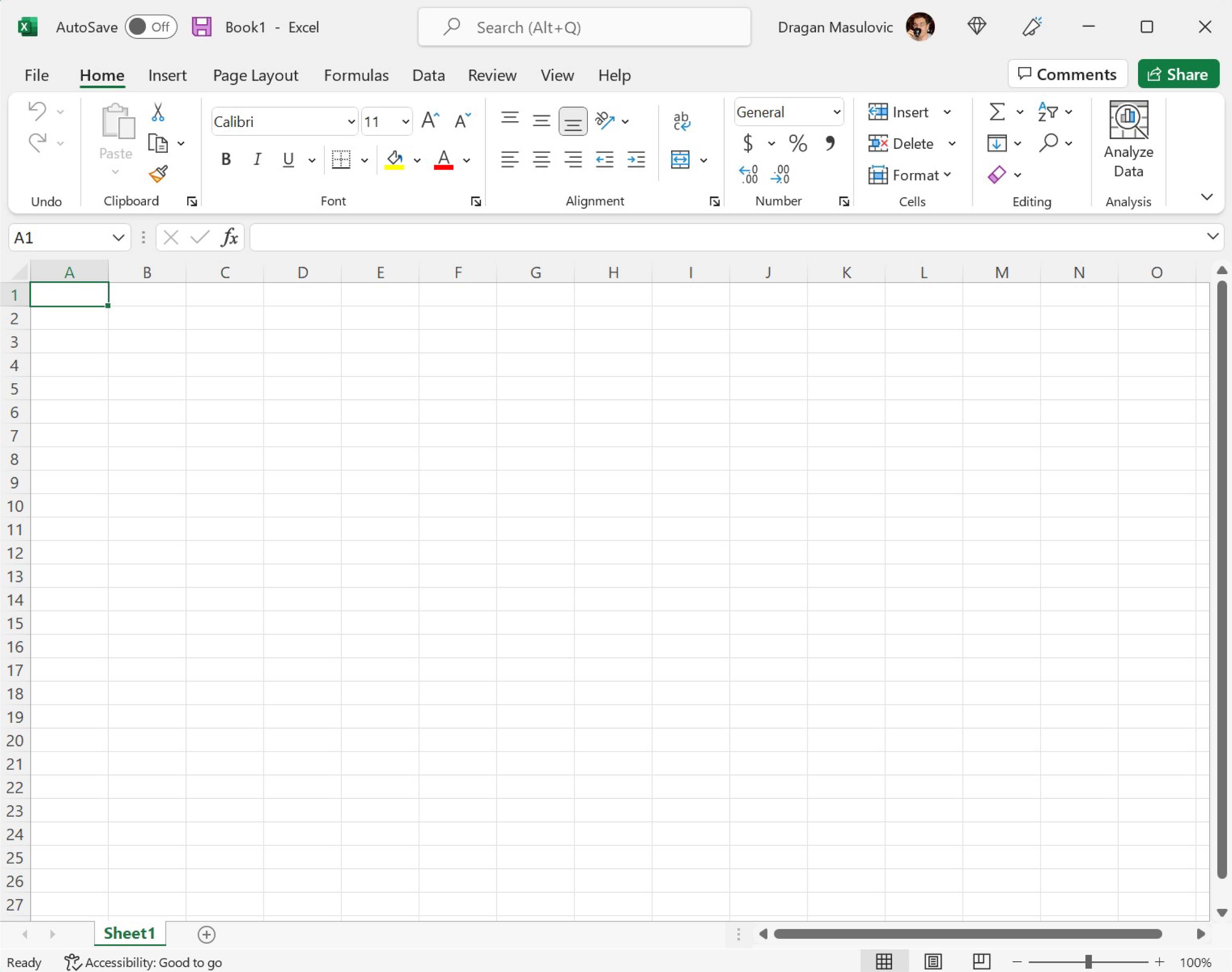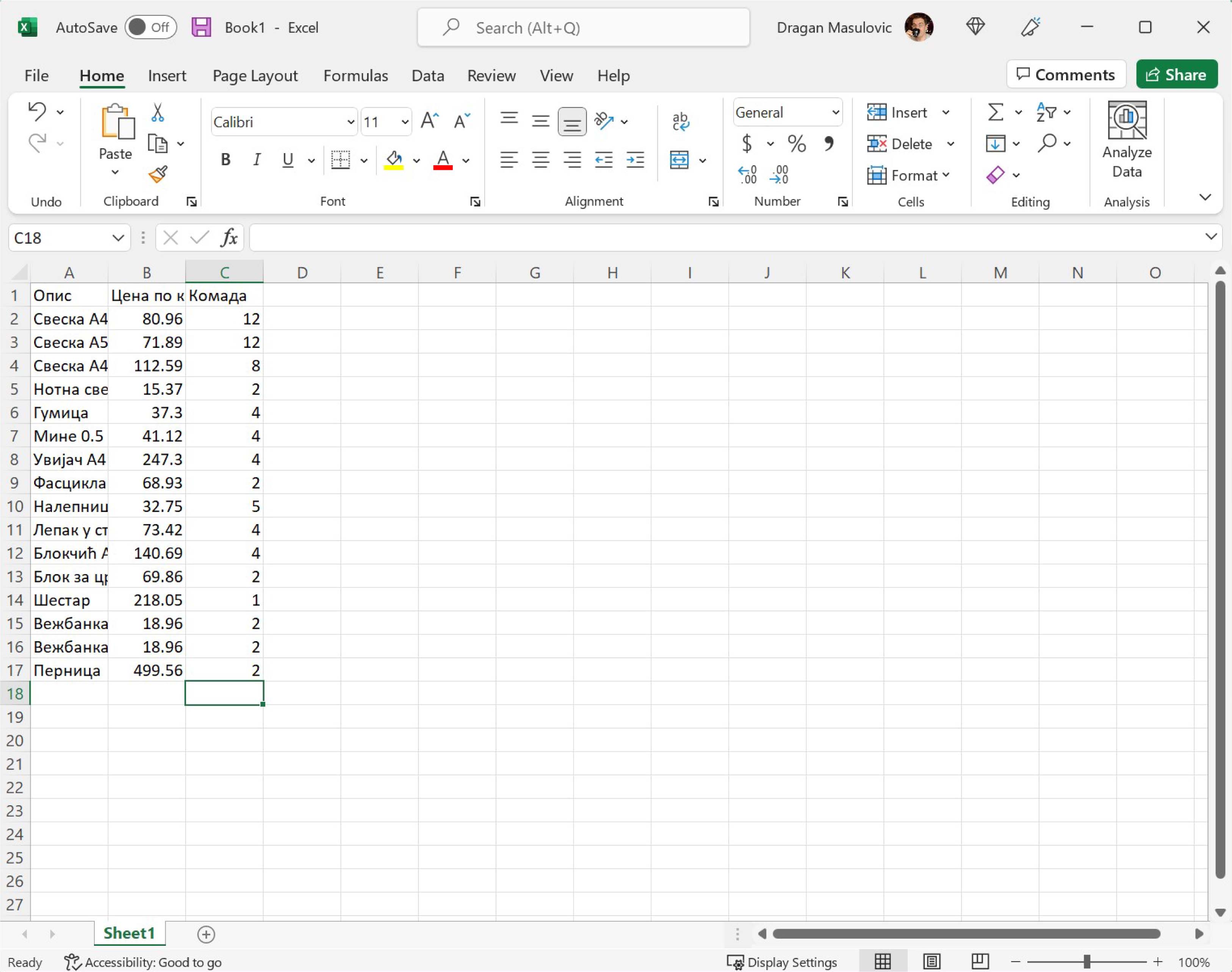 Ексел аутоматски додели неку „стандардну“ ширину колонама и висину врстама табеле. Ако ништа не промениш унос података ће бити непријатан и табела ће на крају изгледати некако овако:
