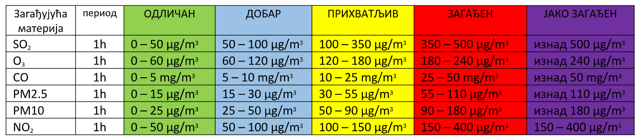 Извор Министарство заштите животне средине - Агенција за заштиту животне средине http://www.amskv.sepa.gov.rs/kriterijumi.php