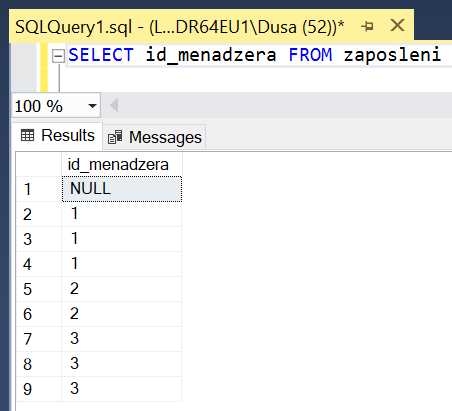 SELECT DISTINCT id_menadzera FROM zaposleni