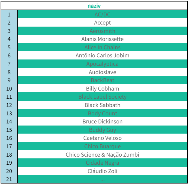 WHERE naziv LIKE '%Rock%';