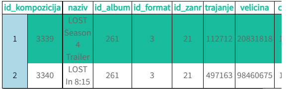 WHERE trajanje BETWEEN 180000 AND 240000;