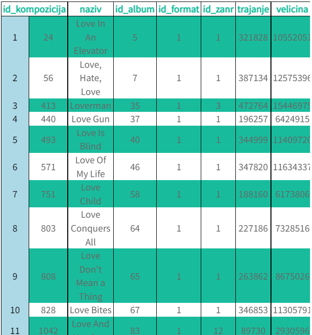 WHERE naziv LIKE 'Love%';