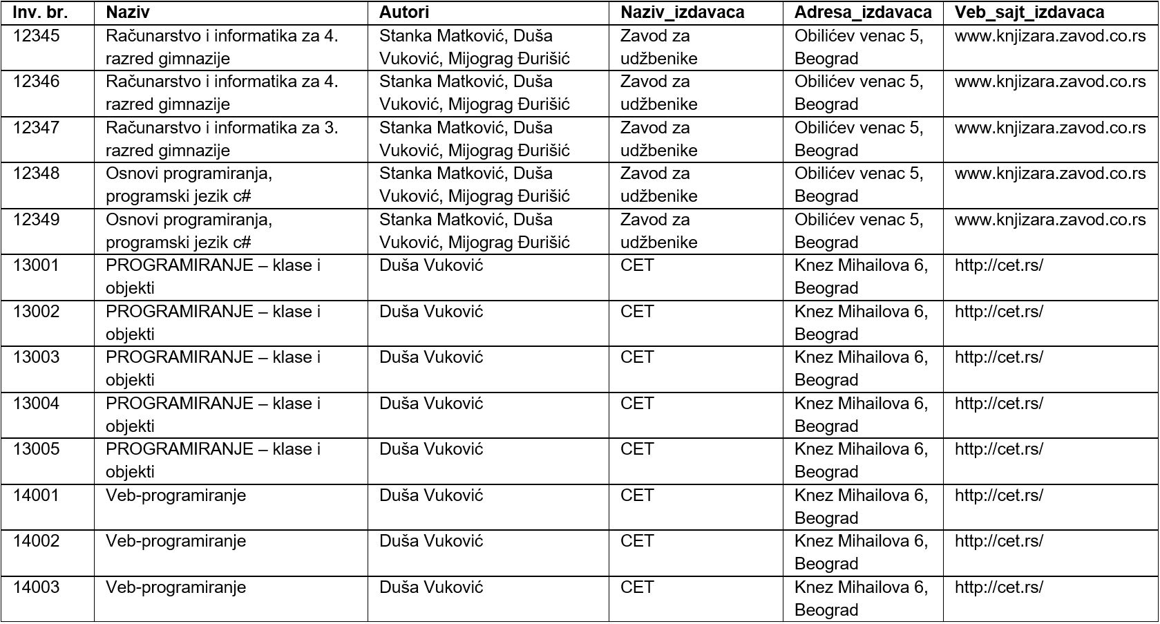 VALUES (111, 'Racunarstvo i informatika za 4. razred gimnazije', 1)